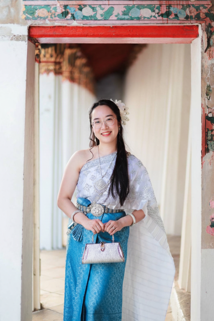 Accented with a refined traditional belt and subtle shimmer details, the costume creates a balanced silhouette that is both dignified and feminine. Ideal for temple visits, engagement ceremonies, cultural celebrations, and refined photo sessions, this piece captures the calm sophistication of timeless Thai elegance.
