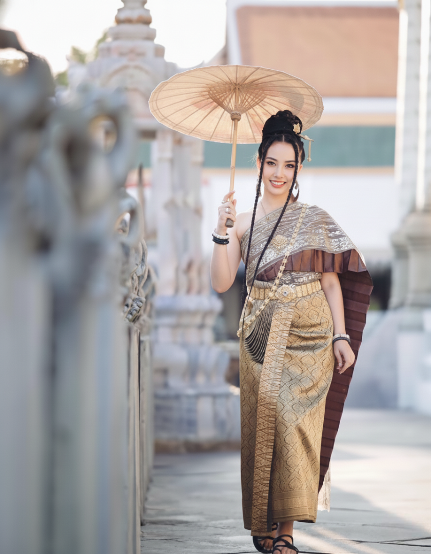 Inspired by the nobility of ancient Siam and tailored for today’s confident wearer, this outfit is perfect for cultural ceremonies, themed photoshoots, and formal celebrations.